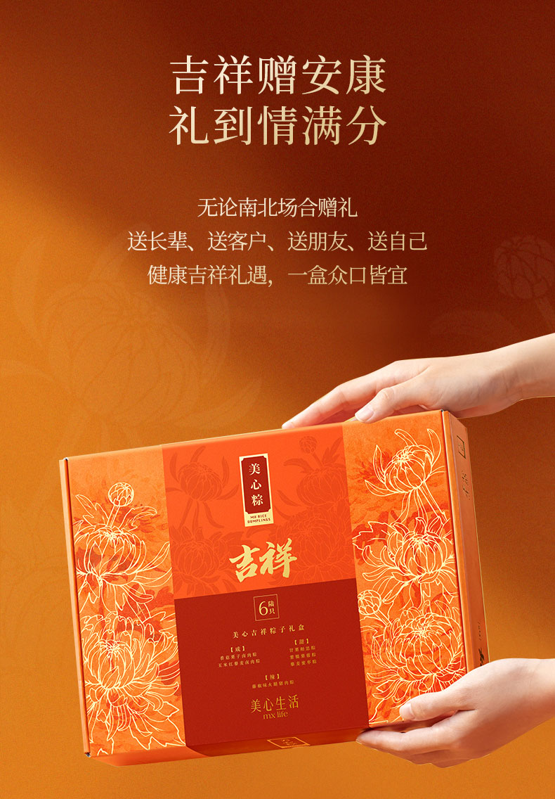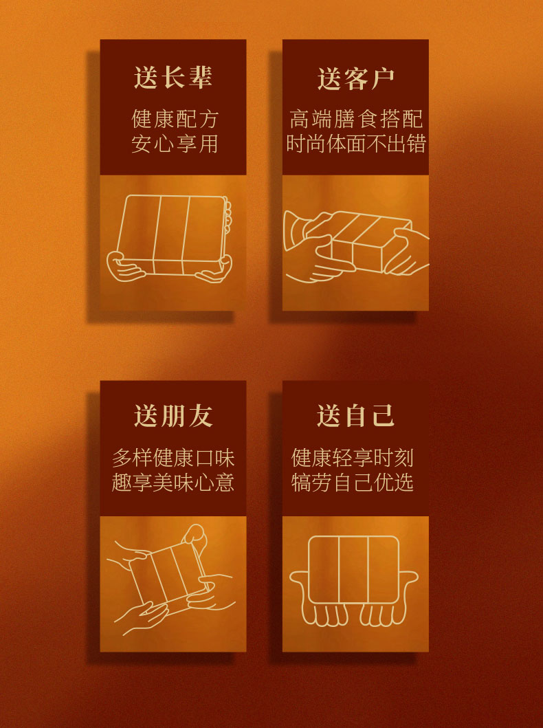 :橙色调礼盒象征活力,弱化传统“厚重感”,呼应现代人对“轻盈吉祥”的追求。